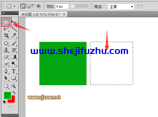 第四步:矩形选区就填充了绿色。再绘一个矩形选区。