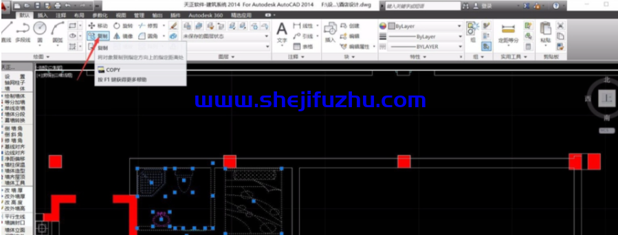 进入复制命令,我们需要先确定一个关键点,作为一个定位,我们可以随意选择,但是最好选择关键点,比如四个角中心点等,这样可以帮助我们更好的定位。